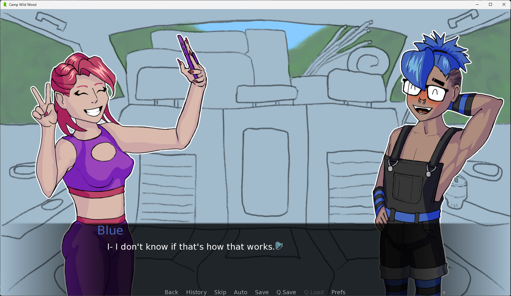 This is an SLG eroge built in Ren'Py. In this game you manage the trust and arousal of five campers as they explore a dormant volcano. This prototype covers the arrival and first morning of the trip and should show how the mechanics affect the characters, your perspective character included.
